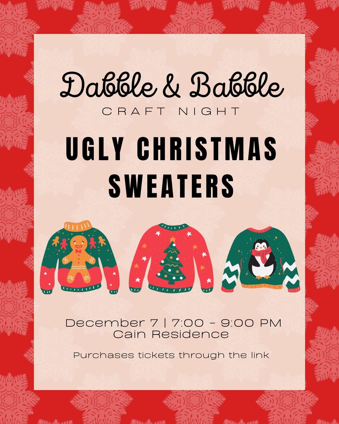 Join us for Dabble & Babble’s Seasonal Craft Party Series—a creative way to slow down, gather with others, and make something fun. On December 7th, we’ll be crafting Ugly (or Cute) Christmas Sweaters that will bring color and joy to your home this Winter. The ticket cost includes materials, crafting lesson, and snacks.